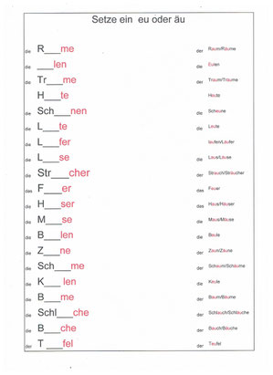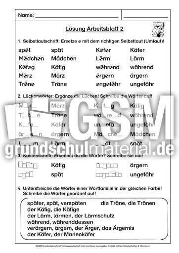 4 Selbstlaute und Mitlaute Schreibe zuerst jedes Wort auf die Zeile darunter Sprich jeden Laut deutlich mit g u t O p a D o s e b a d e n Male jetzt Kästchen mit Selbstlauten rot , Kästchen mit. Die mit ä geschrieben werden Träume sind Schäume Grammatik Grundschule / Dieses Diktat enthält viele Wörter, die mit äu geschrieben werden Der Neue Deutsch Klasse 3 / Wörter mit eu Endlich Sommerferien Deutsch Klasse 3 / Wortbausteine ig und –lich Die Wahl Übungsdiktate 3 Klasse / Merkwörter mit Dehnungs – h. Aufgabe 9 Merkwörter mit ä Folgende Wörter kann man nicht von Wörtern mit a ableiten Schreibe die Wörter in dein Heft und markiere den Umlaut farbig!.