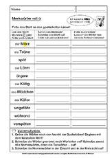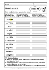 4 Selbstlaute und Mitlaute Schreibe zuerst jedes Wort auf die Zeile darunter Sprich jeden Laut deutlich mit g u t O p a D o s e b a d e n Male jetzt Kästchen mit Selbstlauten rot , Kästchen mit. Merkwörter lesen, wiederholen und ihre Schreibweise automatisieren. Info und Spielideen (für Erwachsene) Arbeitsblatt Wie und wo merkst du dir Merkwörter?.