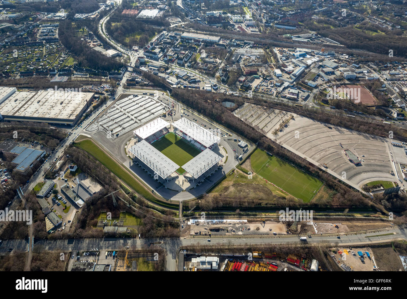 Luftaufnahme Neues Stadion Rot Weiss Essen Rwe Parkplatz Auf Dem Grundstuck Des Alten Stadions Essen Ruhrgebiet Nordrhein Westfalen Stockfotografie Alamy