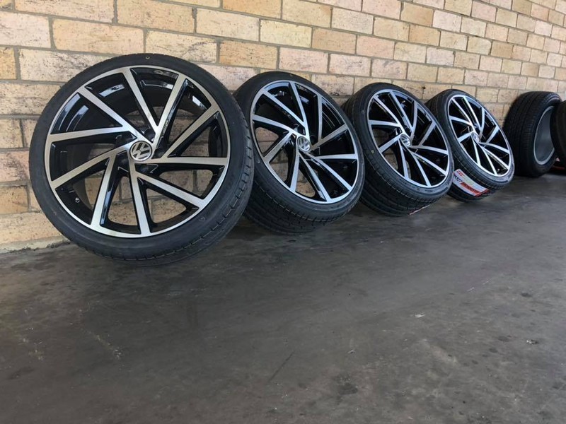 We sell cheap rims!. Which Alloy Wheels Will Fit My New Volkswagen Golf?. 4 brand new wheels 19 inch Volkswagen VW Golf R Spielberg style REP wheels machined face black 5 twin spoke twist alloy rims 5x112 19x85 wheels only no badges, you use your factory caps add basic tyres and make it a package for $1290 will fit VW Golf R GTI TSI TDI Jetta Passat Caddy Audi A3 S3 RS3 Mercedes A class C class AMG models and more just ask Pick up or delivery available.