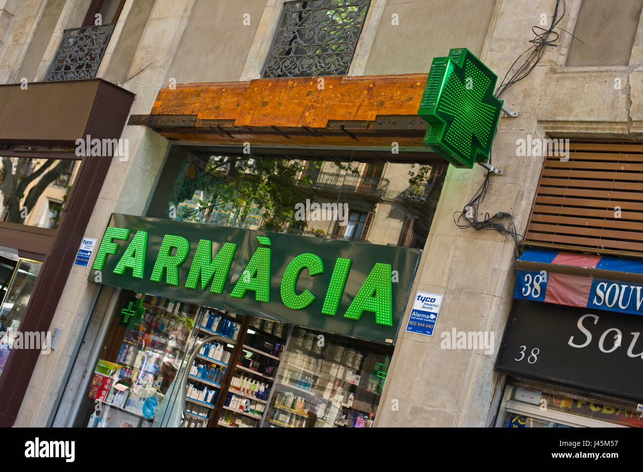 Aussenseite Der Farmacia Apotheke Auf Der La Rambla In Barcelona Spanien Es Eu Stockfotografie Alamy
