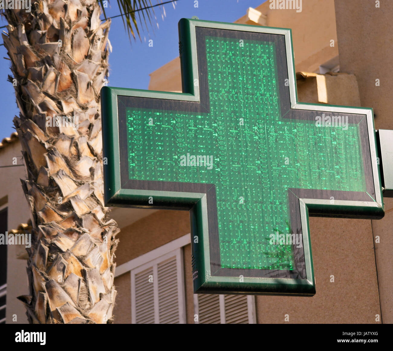 Apotheke Oder Farmacia Grune Unterzeichnen In Spanien Stockfotografie Alamy