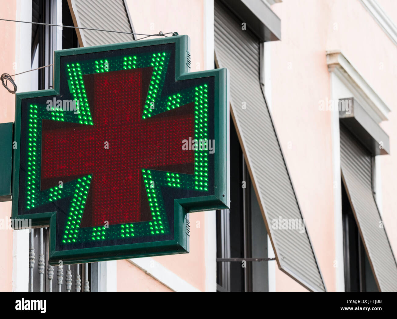 Apotheke Farmacia Zeichen Mit Grunem Kreuz In Italien Redaktionelles Foto Bild Von Apotheke Italien