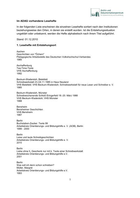 Lesehefte Adag Vorhanden Alpha Archiv