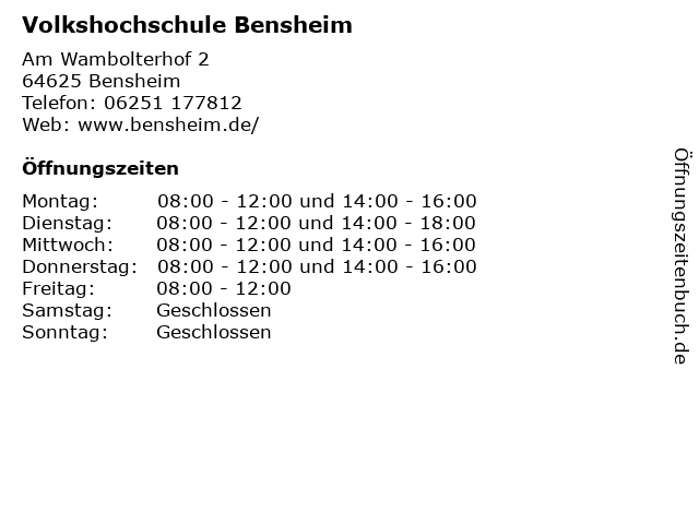 ᐅ Offnungszeiten Volkshochschule Bensheim Am Wambolterhof 2 In Bensheim