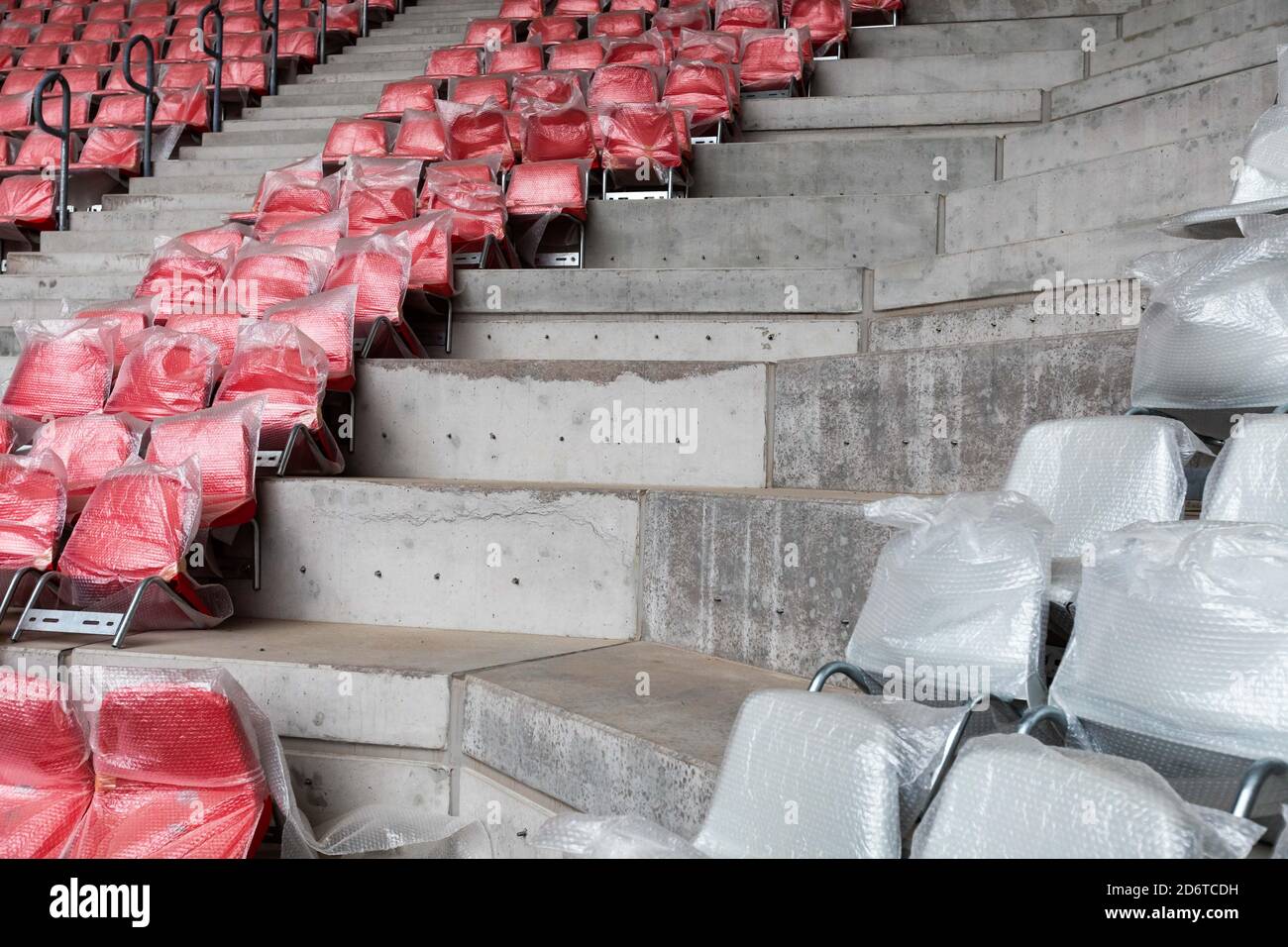 Freiburg Germany 16th Oct Seat Shells Covered With Protective Foil Are Waiting For Their First Use On The Construction Site Of The New Stadium Of Sc Freiburg The Sports Club Sc