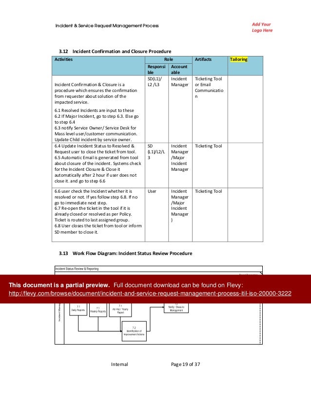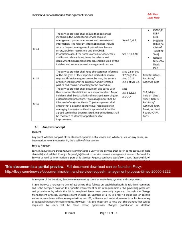 Incident Service Request Management Process Itil Iso 000 37 Page Word Document