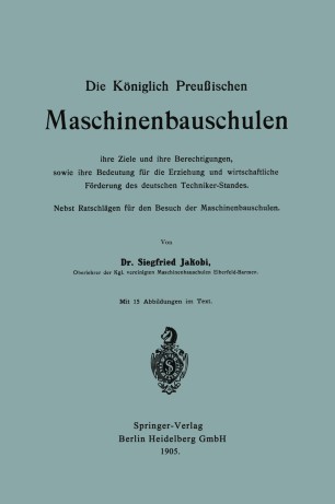Die Koniglich Preussischen Maschinenbauschulen Ihre Ziele Und Ihre Berechtigungen Sowie Ihre Bedeutung Fur Die Erziehung Und Wirtschaftliche Forderung Des Deutschen Techniker Standes Springerlink