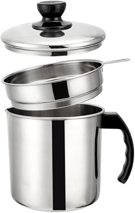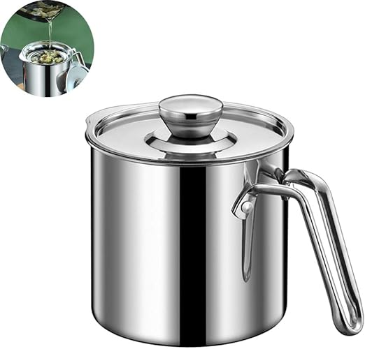 Bestomz Olkanne Edelstahl Filter Topf 1 2l Ol Sieb Topf Mit Deckel Ol Aufbewahrung Amazon De Kuche Haushalt