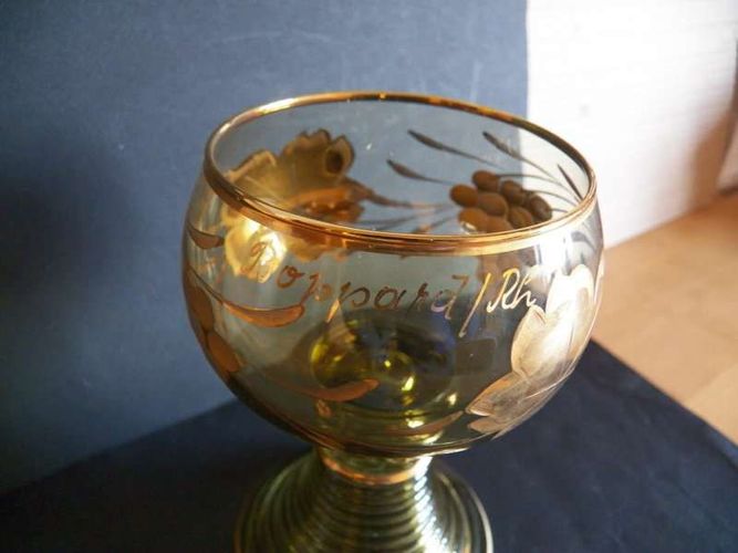 Romer Weinglas Mit Grunem Fuss Und Goldfarbener Verzierung Weinlaub Reben Kaufen Bei Hood De