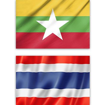 Flags Myanmar And Thailand On A White Royalty Free Vector
