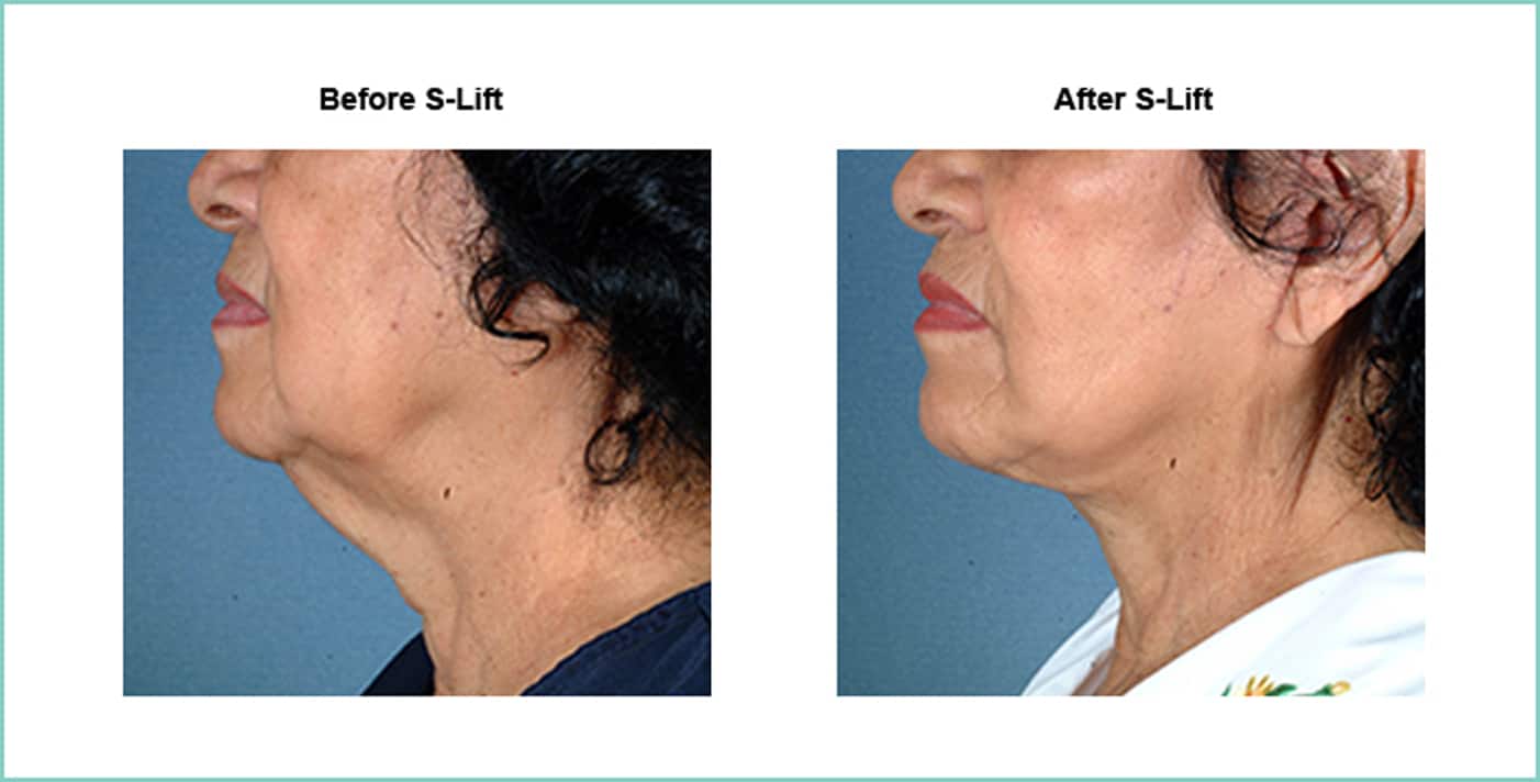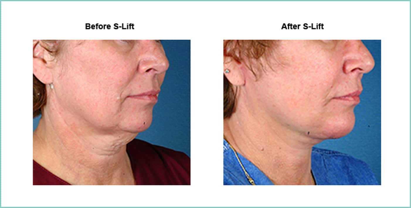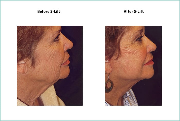 The Slift, or Jlift, is a “mini” facelift technique which can improve the appearance of mild to moderate sagging in the lower face and neck. The SLift is executed on a deeper plane of the skin using miniincisions Skin, fat and muscle are all moved simultaneously, encouraging longlasting results If a patient does not need a brow lift or eyelift, an SLift takes between 90 minutes to three hours, which is about half the time of a traditional lift. The SLift is a hiddenscar facelift procedure designed to rejuvenate the neck, jowls and face Compared to traditional facelifts, it is a less invasive operation, with fewer complications and faster recovery.