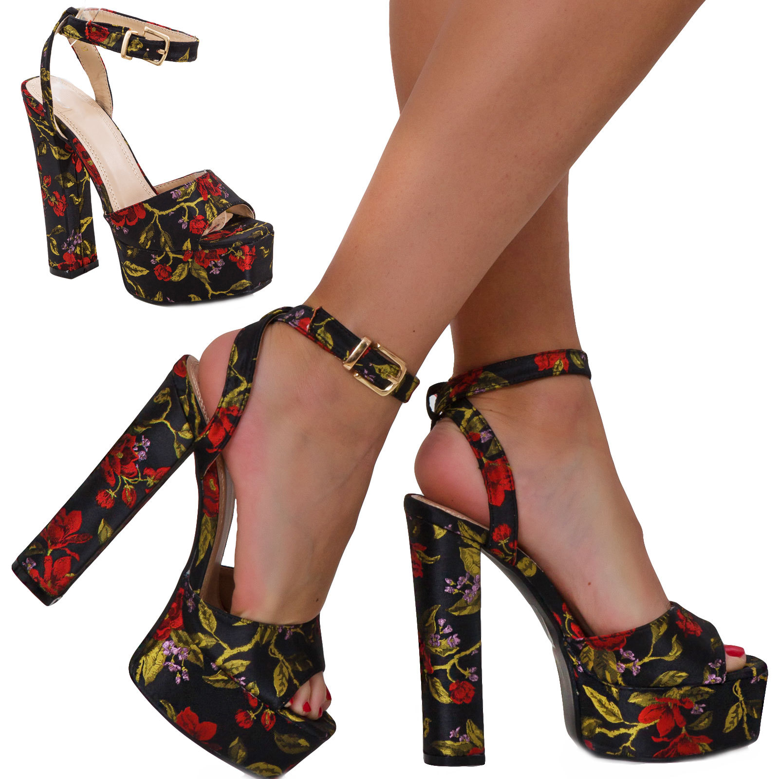Women S Shoes Plateau Sandals Floral Heel Large Elegant Strap 15 01 Ebay