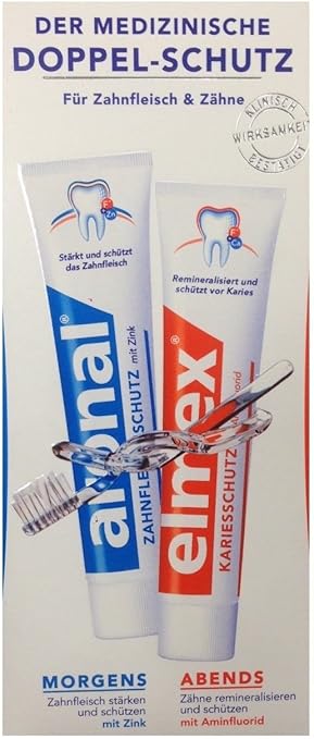Amazon De Aronal Zahnpasta Aronal Und Elmex Zahnpasta Fur Zahnfleisch Zahne Doppelpack 2x 75ml Zahncreme5ml Zahnfleischschutz Mit Zink Pzn Elmex Forschung