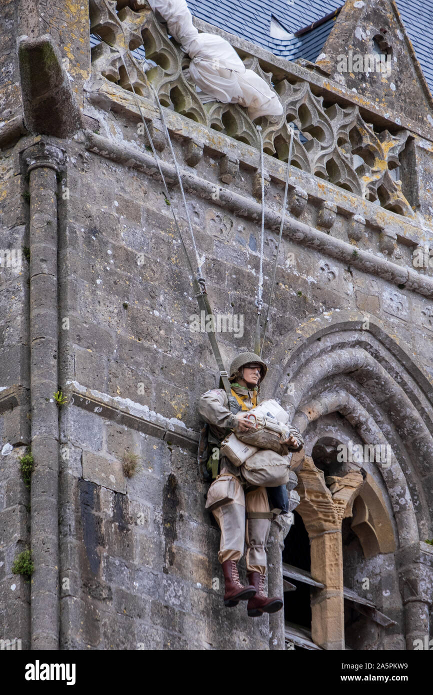 Normandy France Manche Europe A Figure Of The World War Ii Paratrooper Hangs From The Church Stock Photo Picture And Rights Managed Image Pic Foh U Agefotostock