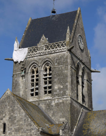The Church Of St Mere Eglise France Still Has A Mannequin Hanging Off Its Steeple Commemorating