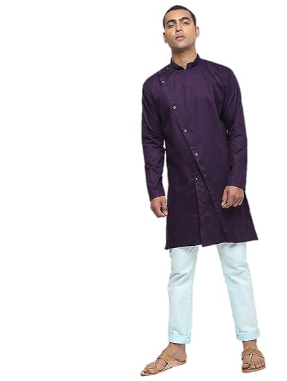 Buy Nirwe Men S Purple Cotton Asymmetric Solid Designer Kurta For Casual At Amazon In