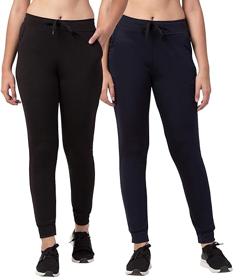 Buy Bluecon Pack Of 2 Women S Polyester Slim Fit Solid Designer Track Pant Yoga Pant For Women Girl Black Navy Blue At Amazon In